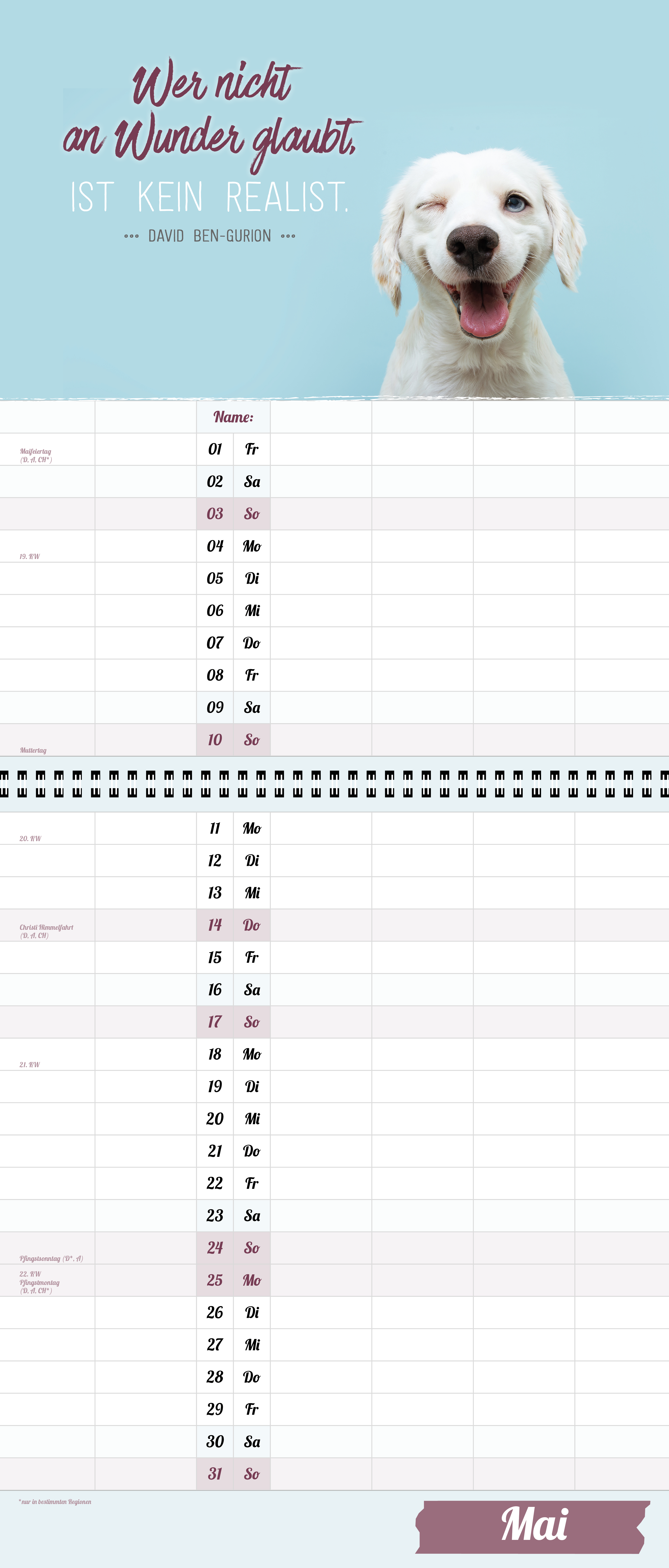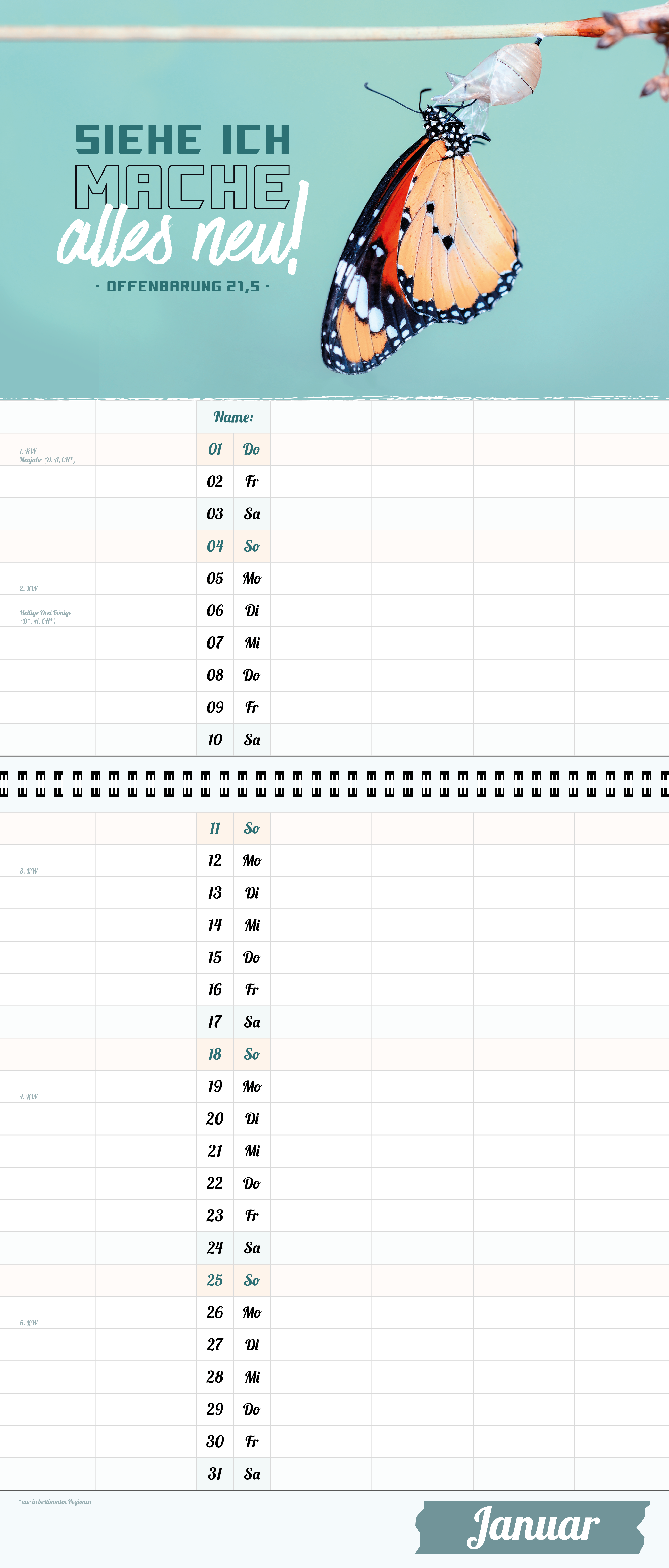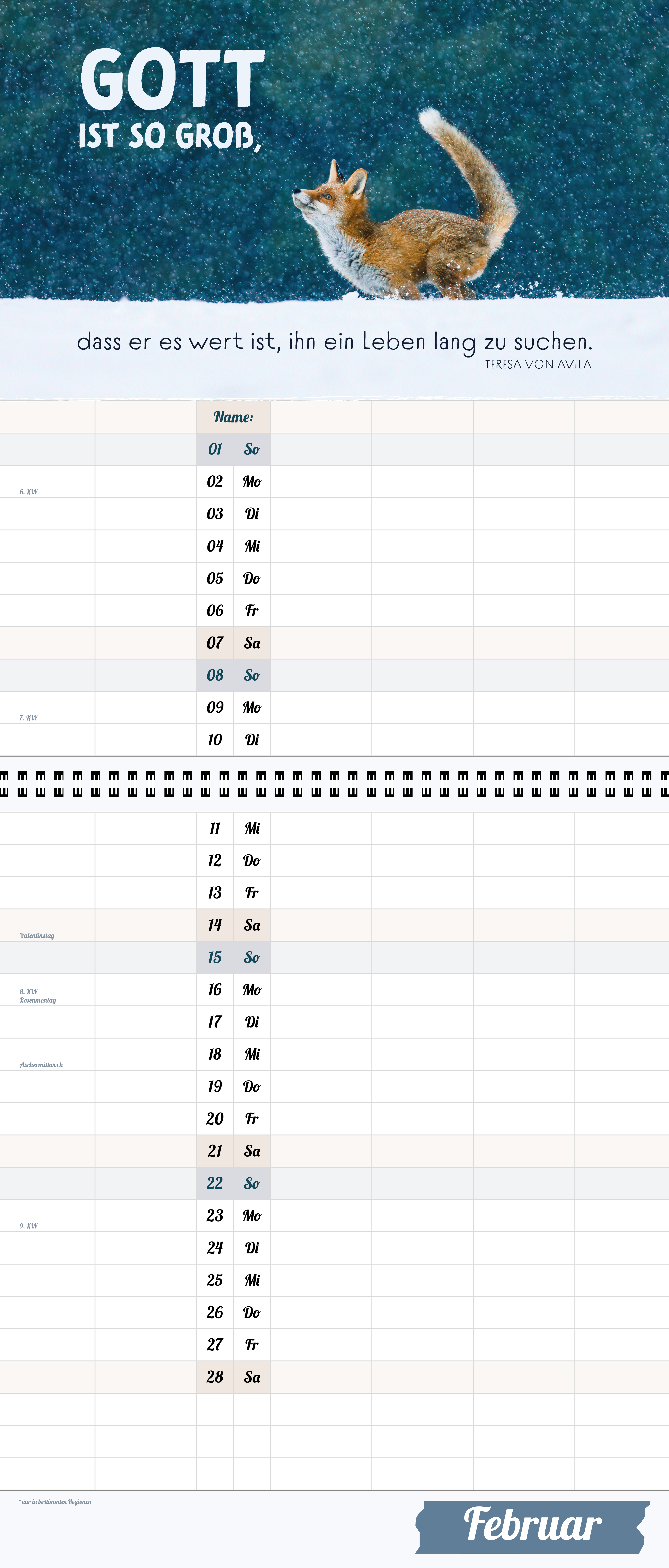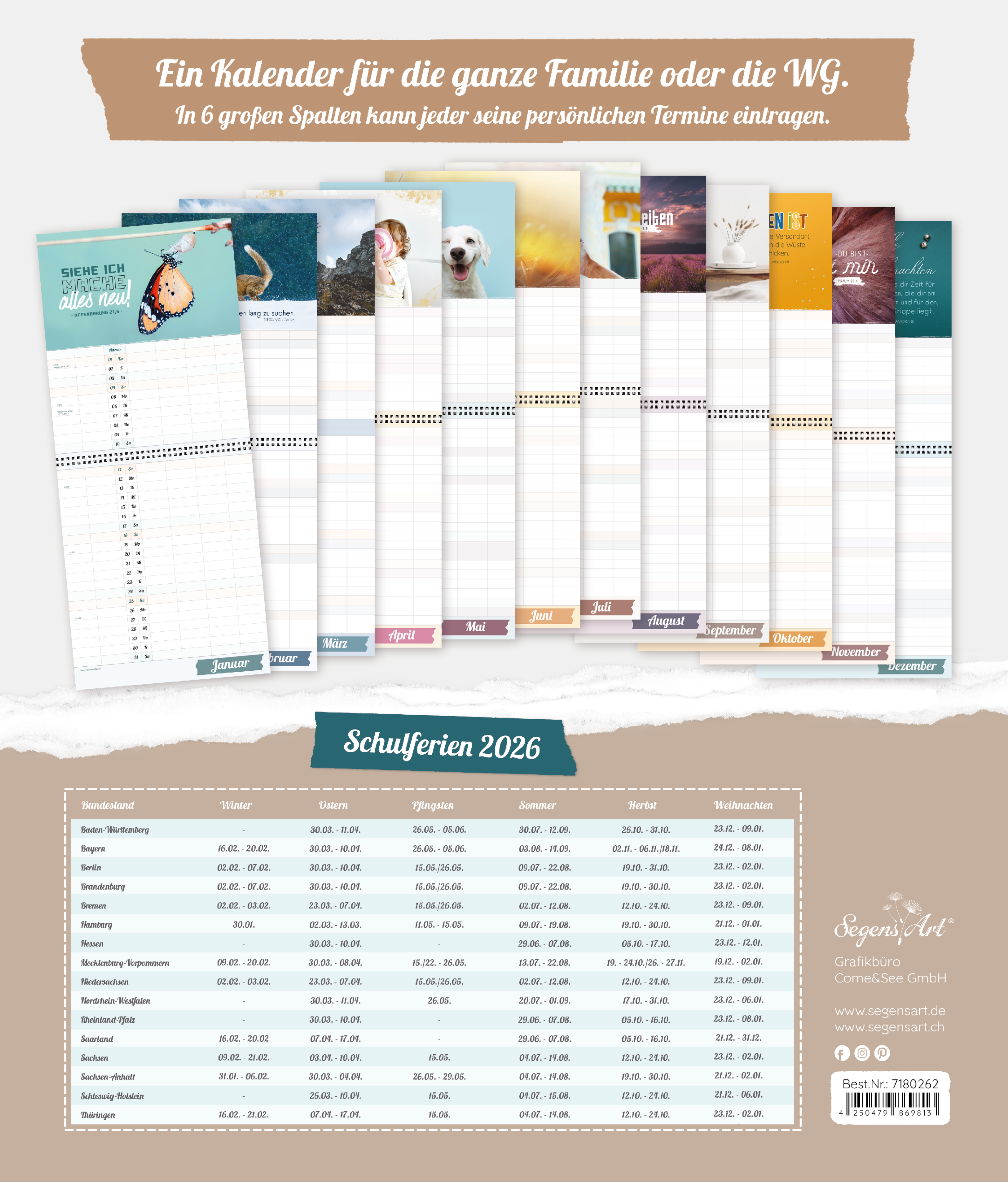Der extragroße Terminkalender für Familie und WG, 6 große Spalten, viel mehr Platz.
