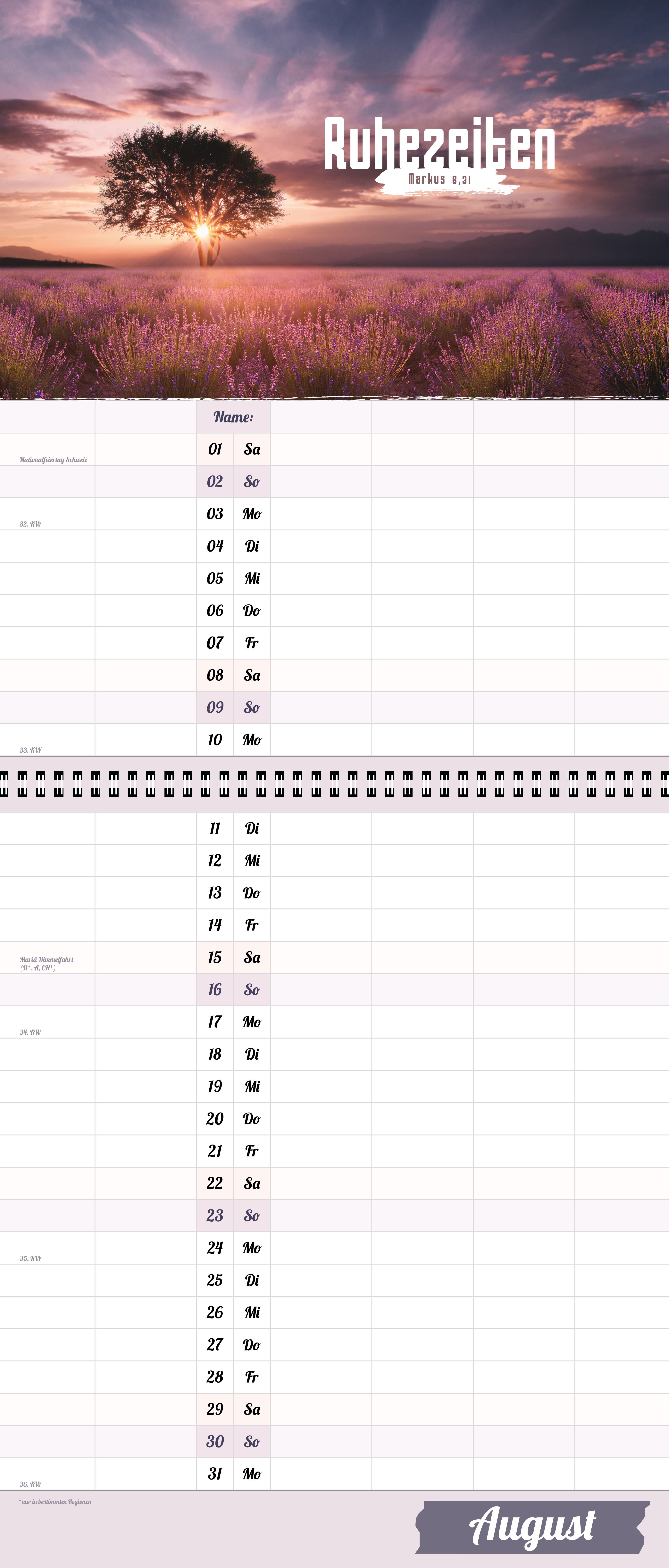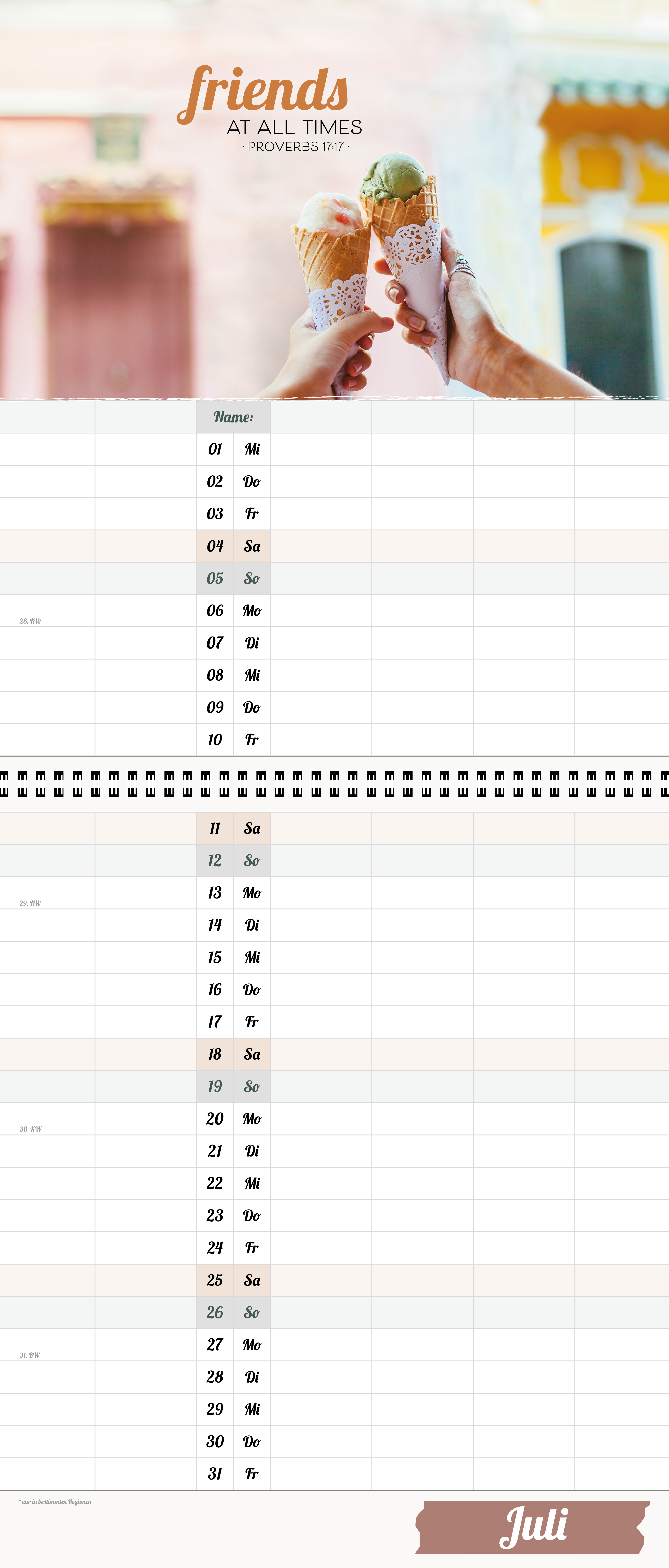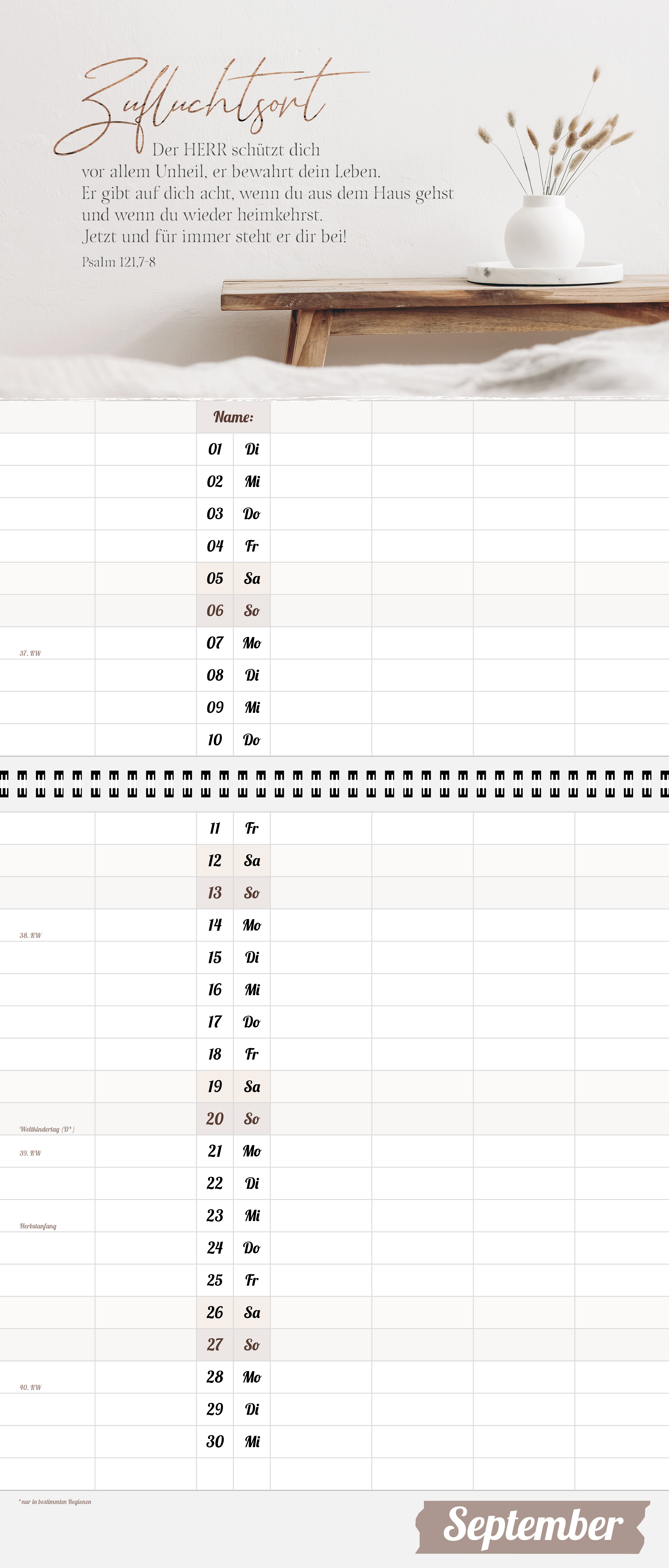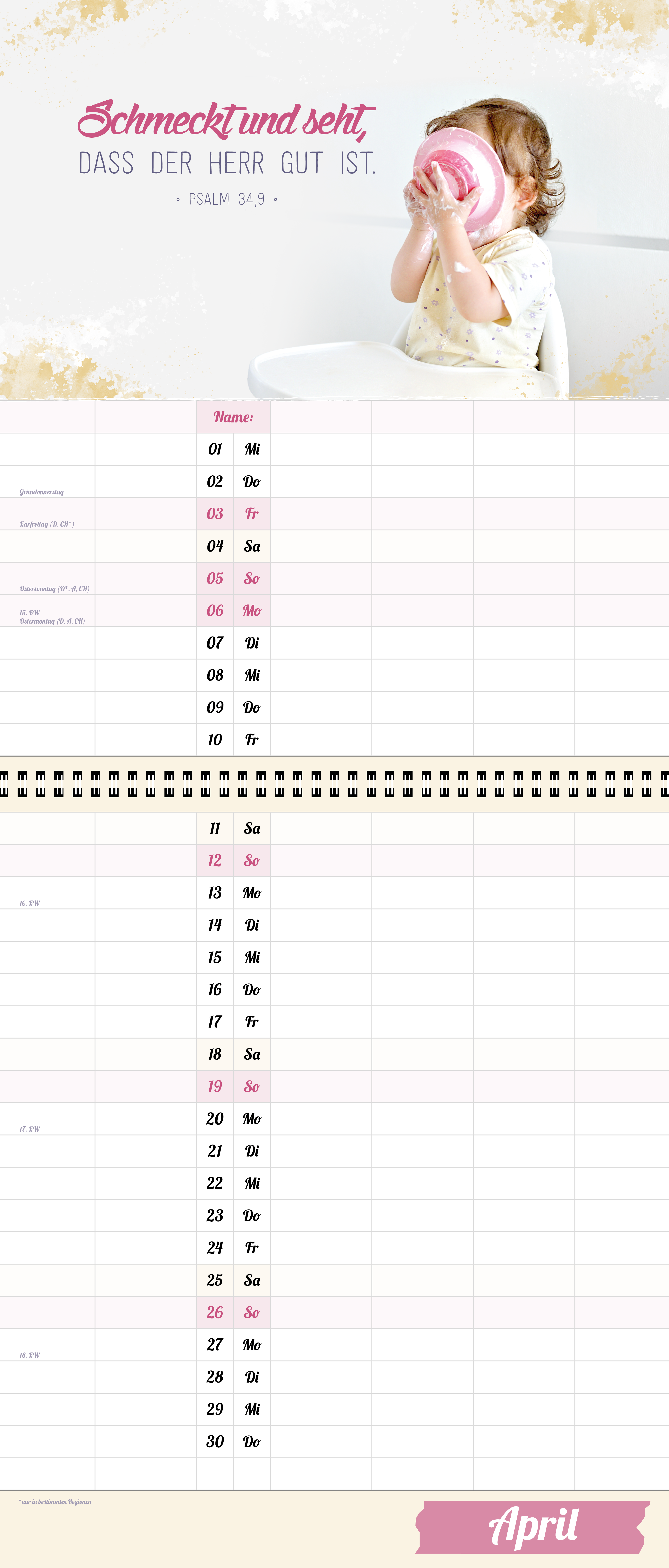 Der extragroße Terminkalender für Familie und WG, 6 große Spalten, viel mehr Platz.