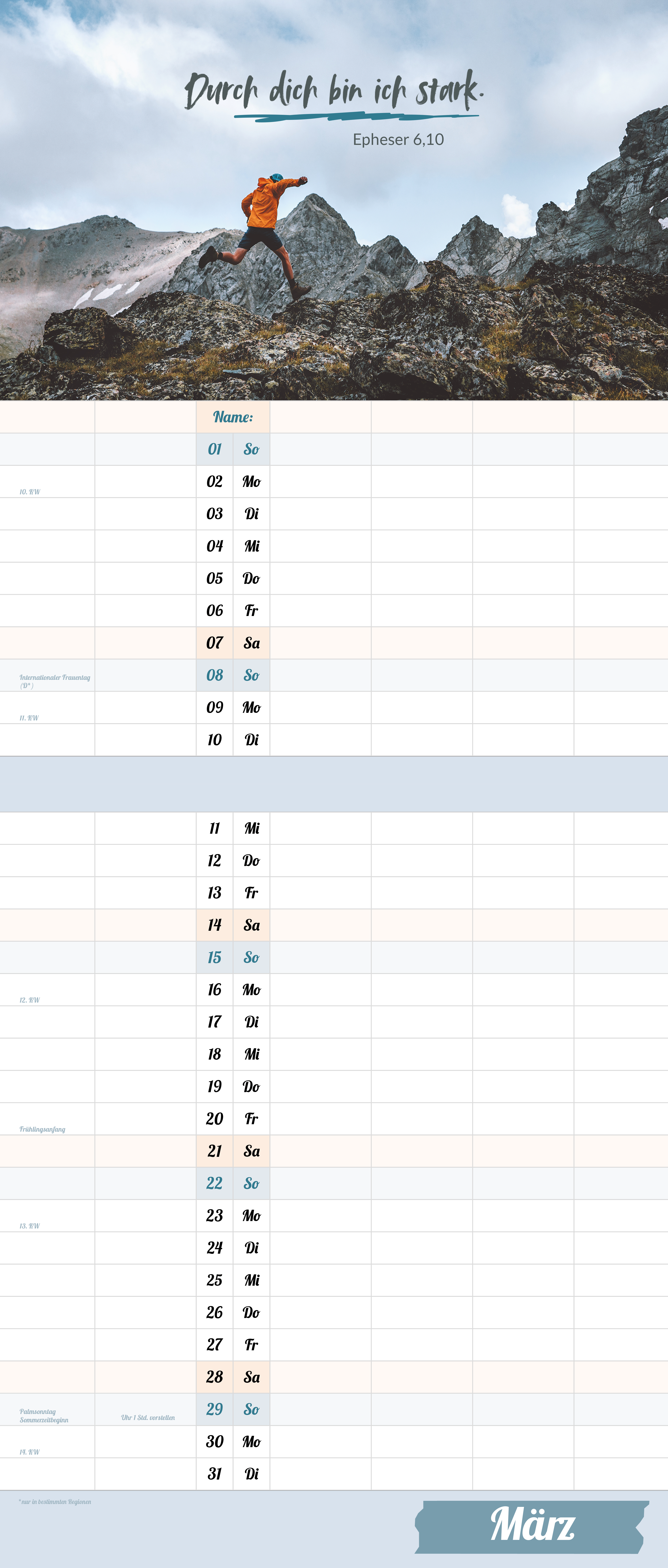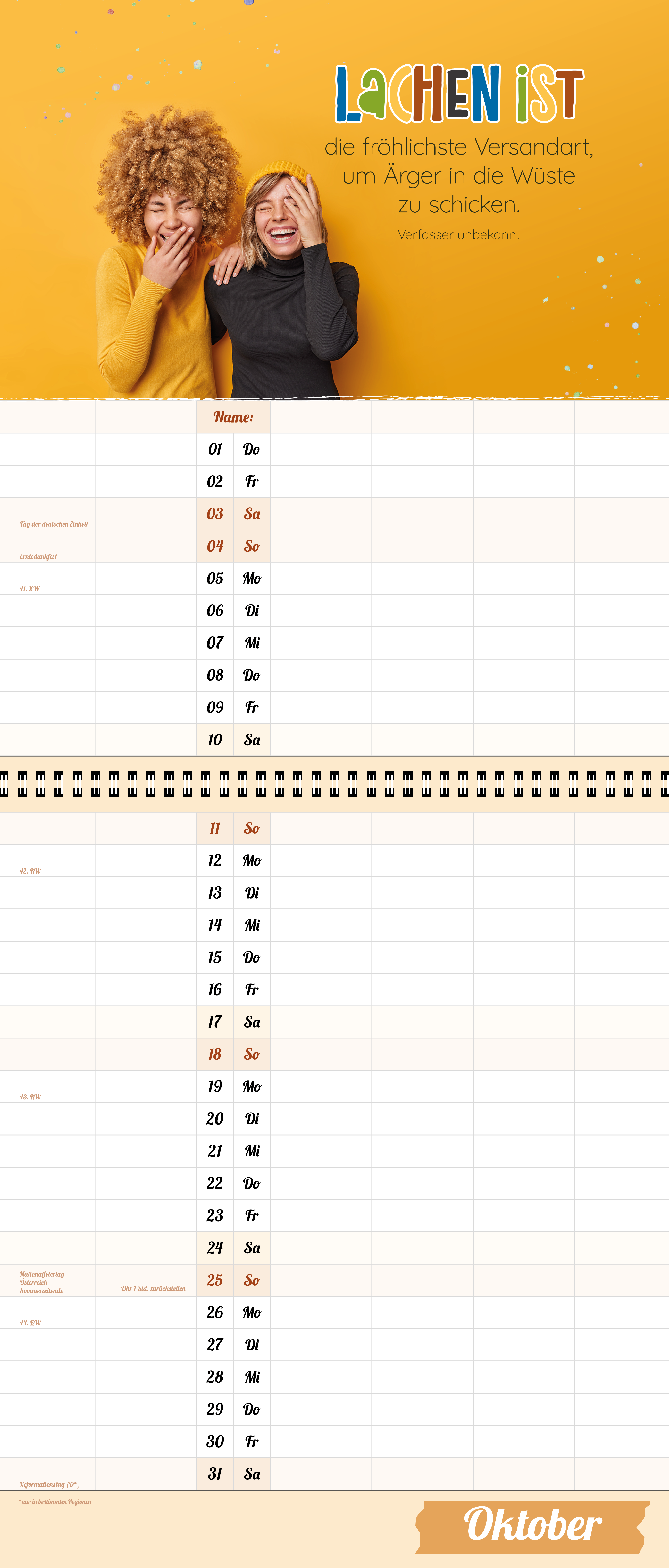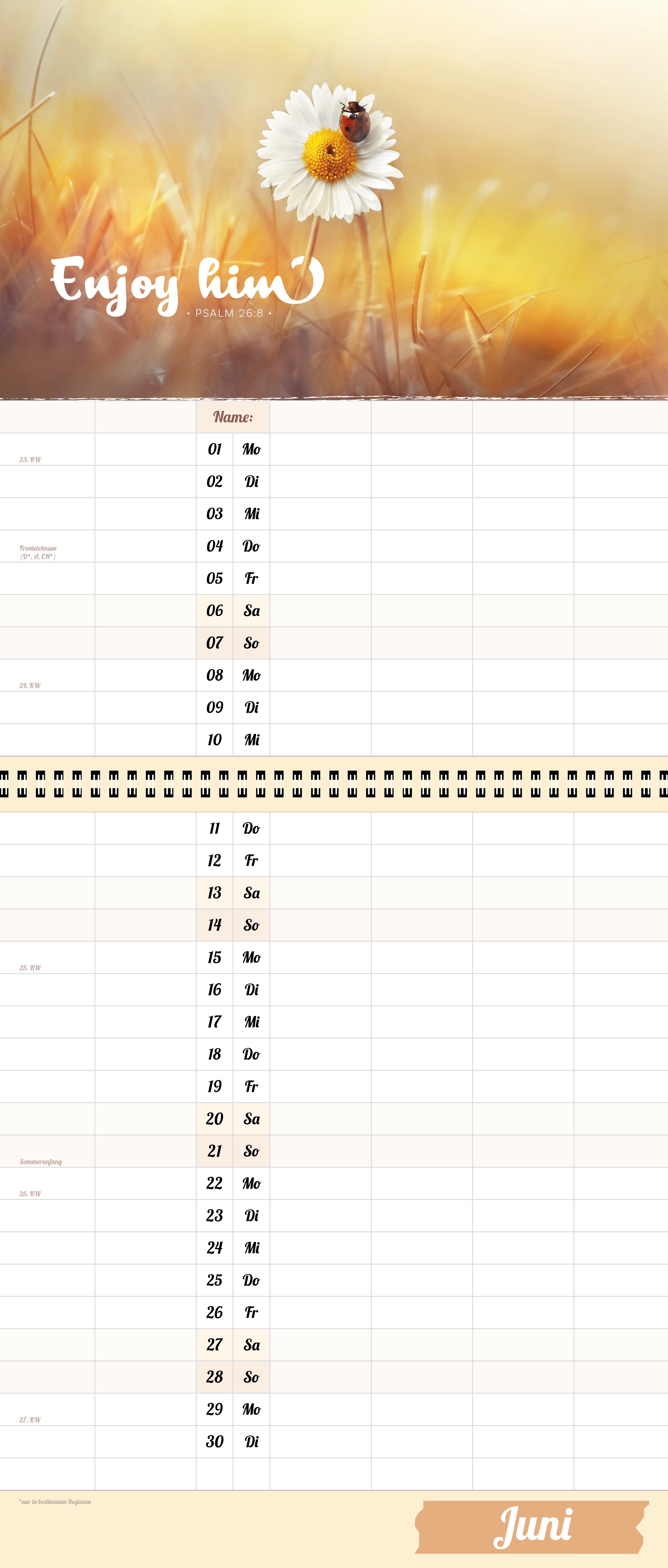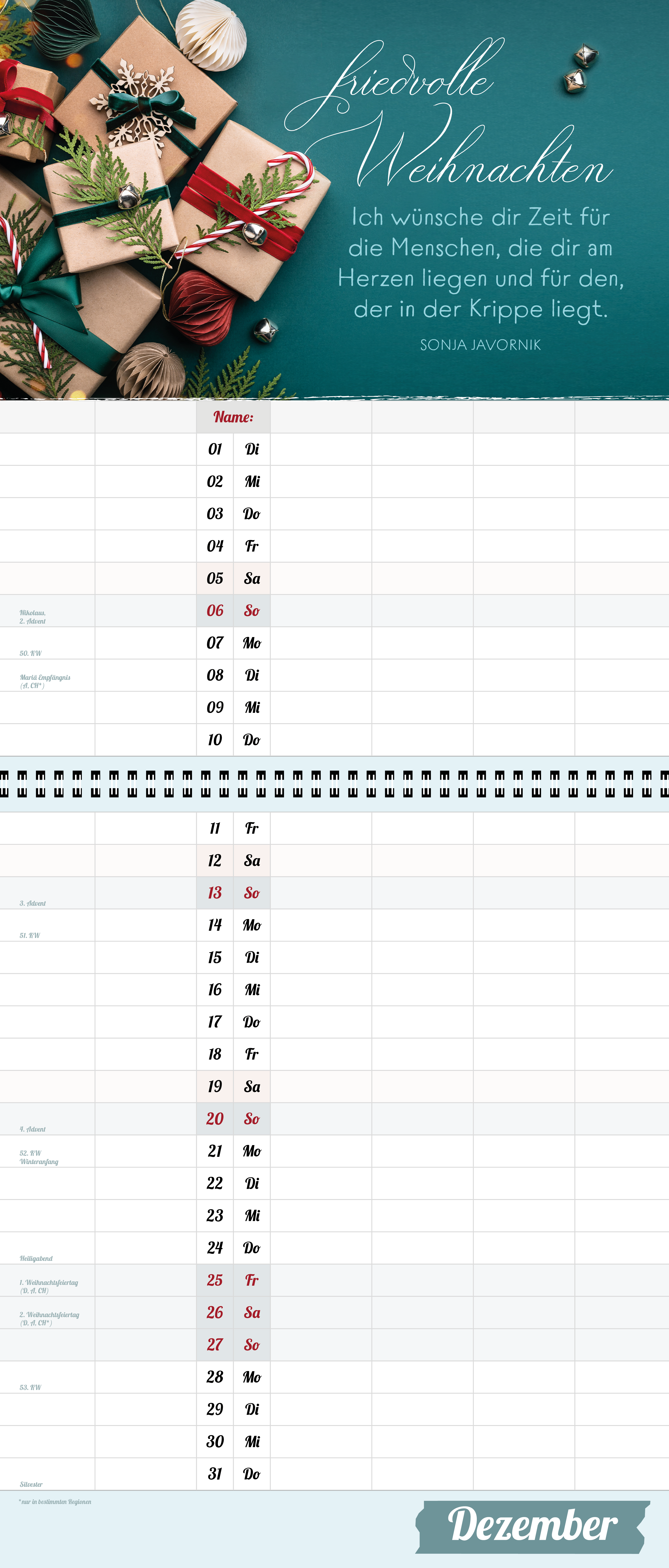 Der extragroße Terminkalender für Familie und WG, 6 große Spalten, viel mehr Platz.