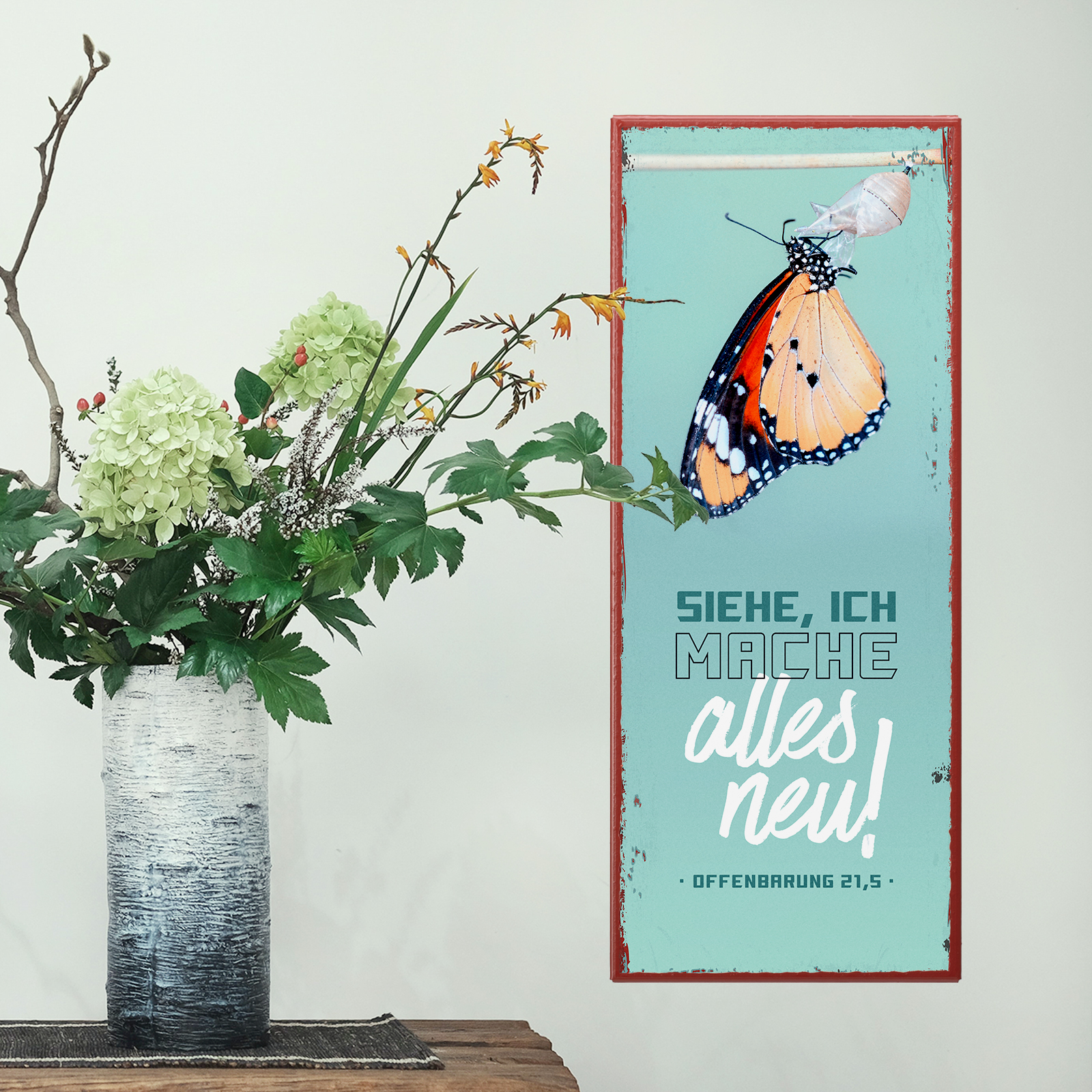 Metallschild lang - Jahreslosung 2026 - Schmetterling