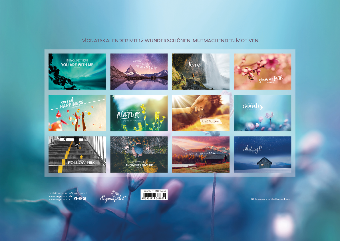 Monatskalender mit 12 wunderschönen, mutmachenden Motiven, mit Spiralbindung, zum Aufhängen