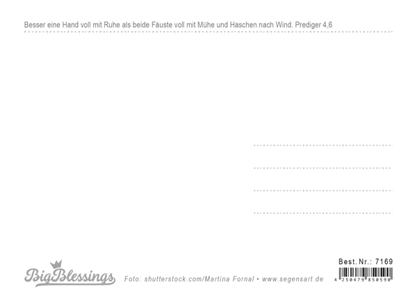 Besser eine Hand voll mit Ruhe als beide Fäuste voll mit Mühe und Haschen nach Wind. Prediger 4,6