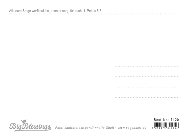 Alle eure Sorge werft auf ihn, denn er sorgt für euch. 1. Petrus 5,7