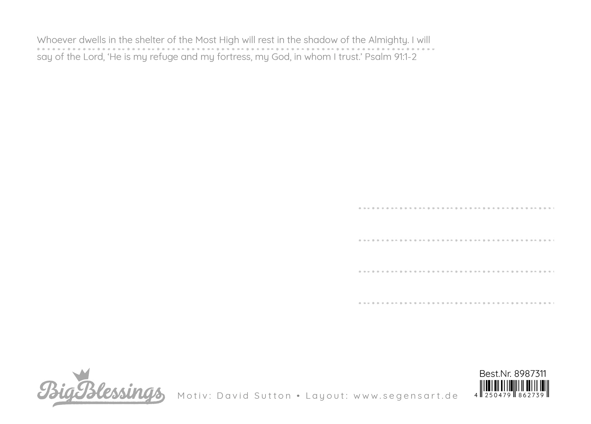 Whoever dwells in the shelter of the Most High will rest in the shadow of the Almighty. I will say of the Lord, ‘He is my refuge and my fortress, my God, in whom I trust.’