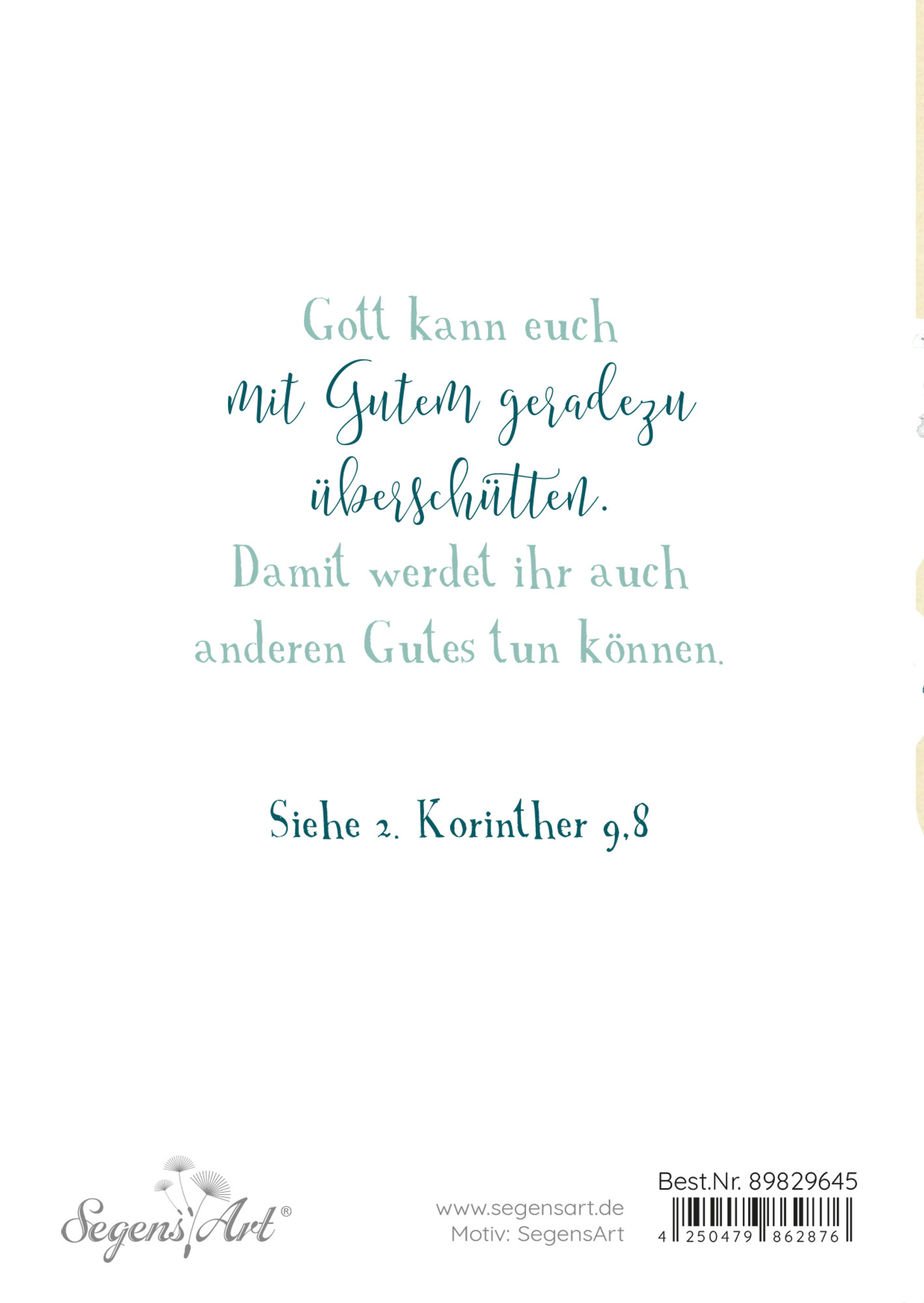 Gott kann euch mit Gutem geradezu überschütten. Damit werdet ihr auch anderen Gutes tun können.