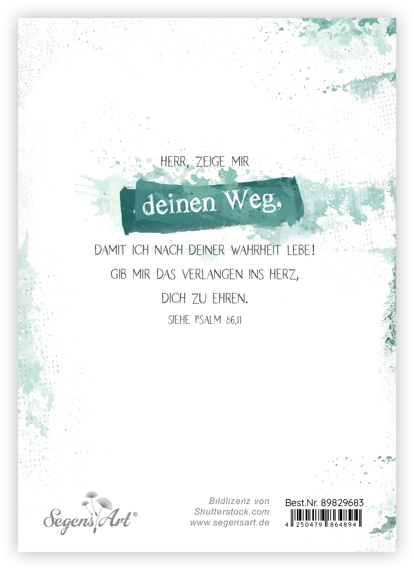 Faltkarte mit farbigem Umschlag und Hülle, im Format 10,5 x 14,8 cm (Format inkl. Umschlag 16 x 11,5 cm)Text:Zur KonfirmationRückseite:HERR, zeige mir deinen Weg, damit ich nach deiner Wahrheit lebe!Gib mir das Verlangen ins Herz, dich zu ehren.Siehe Psalm 86,11