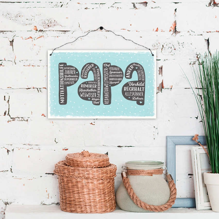 Papa - Motivationshilfe, Entertainer, Zuhörer, Grillmeister, Superheld, Ermutiger, Trostspender, Ratgeber, Sportexperte,