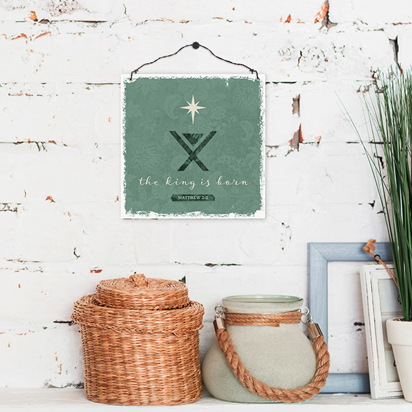 Holzschild im Format 13 x 13 cm, für trockene Innenräume geeignet.Mit doppeltem Draht zum Aufhängen und zusätzlicher Aufstellmöglichkeit - Es wird ein Holzstift mitgeliefert, der einfach auf der Rückseite angebracht werden kann.Handmade - Die Holzschilder werden hier vor Ort von uns produziert.Text:The king is born.Matthew 2:2