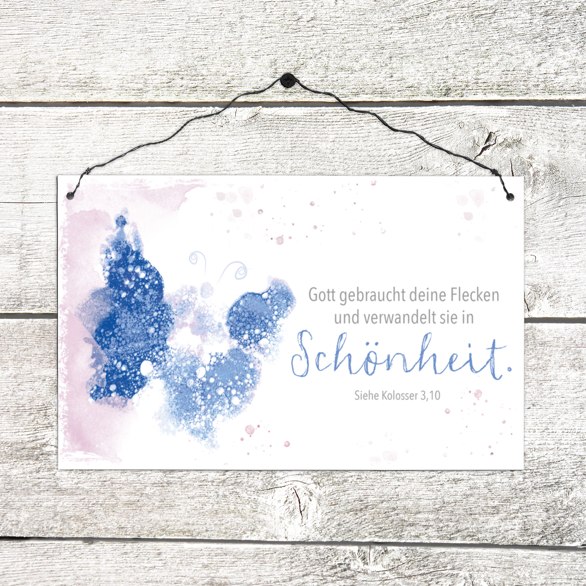 Holzschild groß - Gott verwandelt deine Flecken in Schönheit