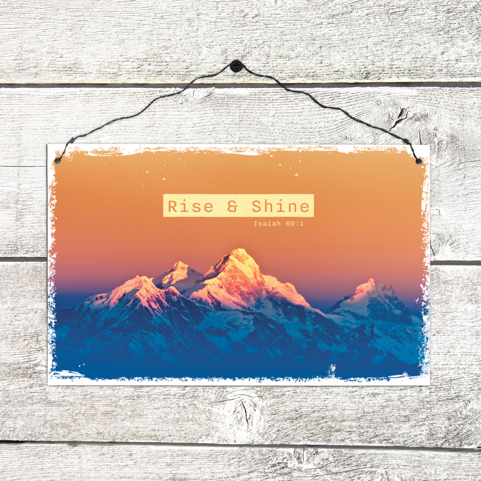 Holzschild im Format 21 x 13 cm, für trockene Innenräume geeignet.Mit doppeltem Draht zum Aufhängen und zusätzlicher Aufstellmöglichkeit - Es wird ein Holzstift mitgeliefert, der einfach auf der Rückseite angebracht werden kann.Handmade - Die Holzschilder werden hier vor Ort von uns produziert.Text:Rise & Shine
