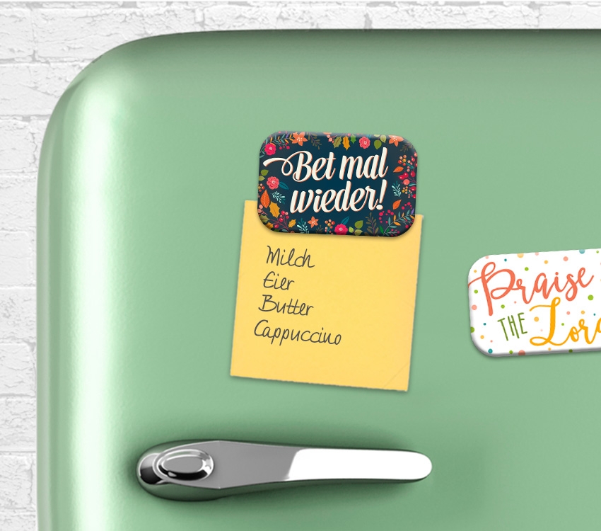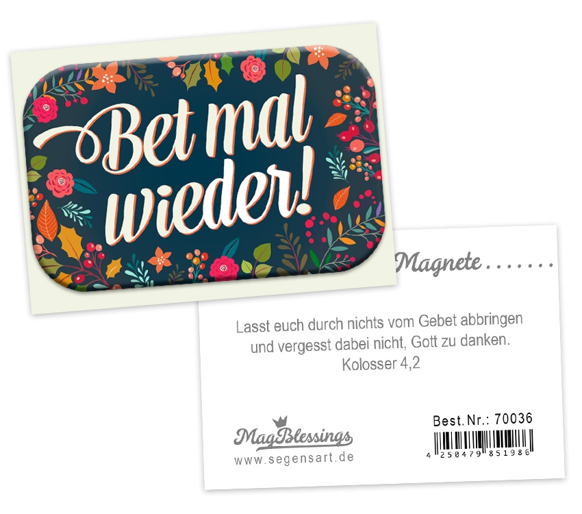 ist das Motiv des Magneten zu sehen, auf der Rückseite befindet sich ein passendes Bibelzitat.
