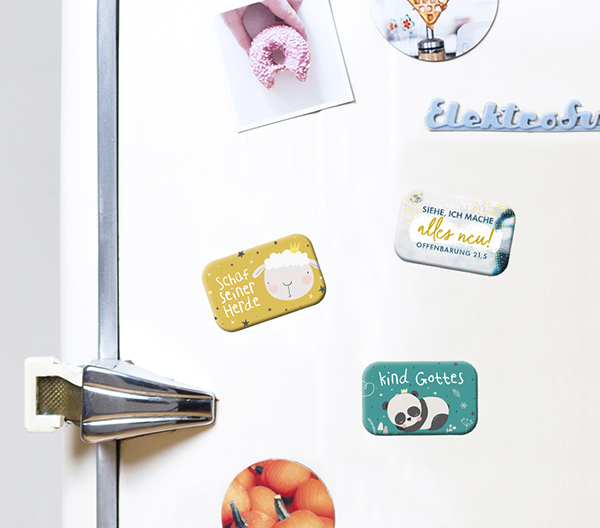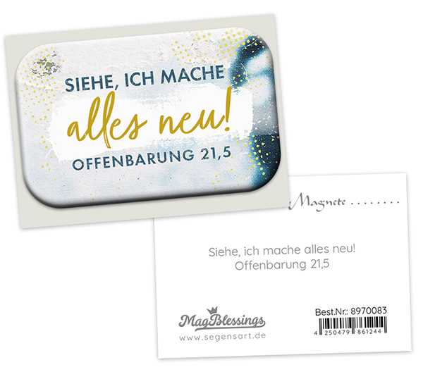 ist das Motiv des Magneten zu sehen, auf der Rückseite befindet sich ein passendes Bibelzitat.