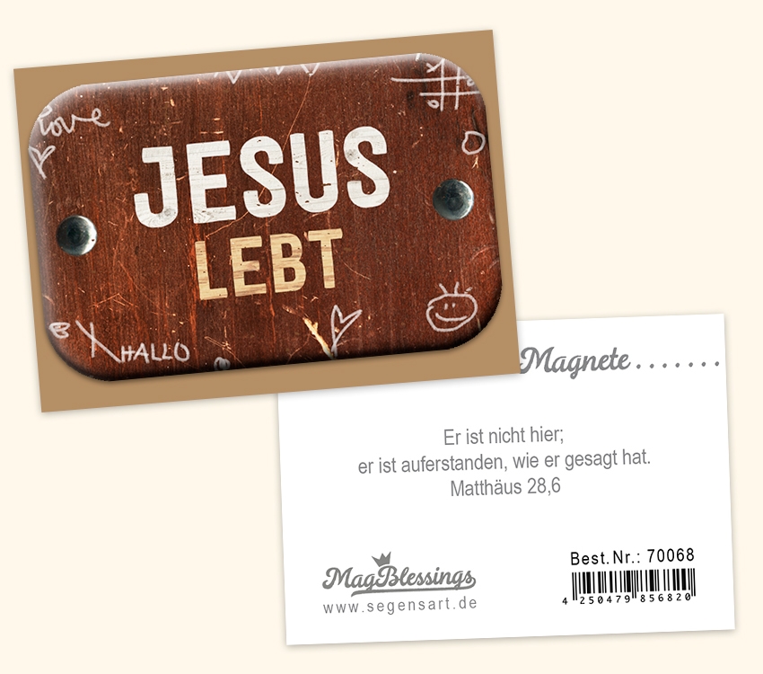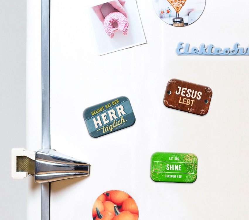 ist das Motiv des Magneten zu sehen, auf der Rückseite befindet sich ein passendes Bibelzitat.