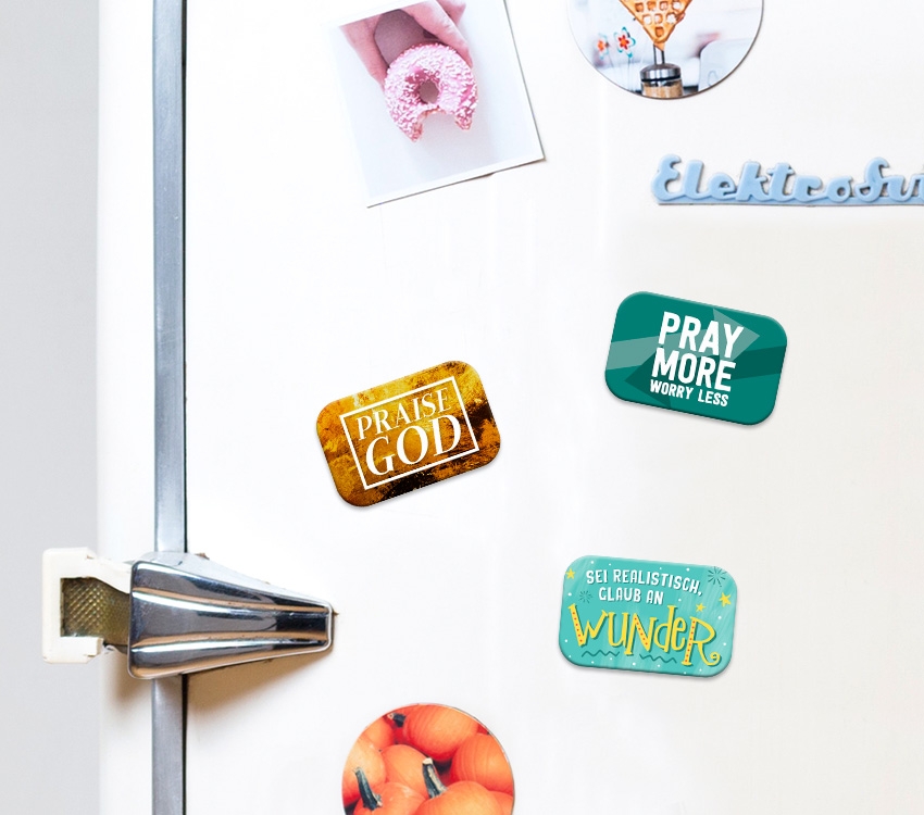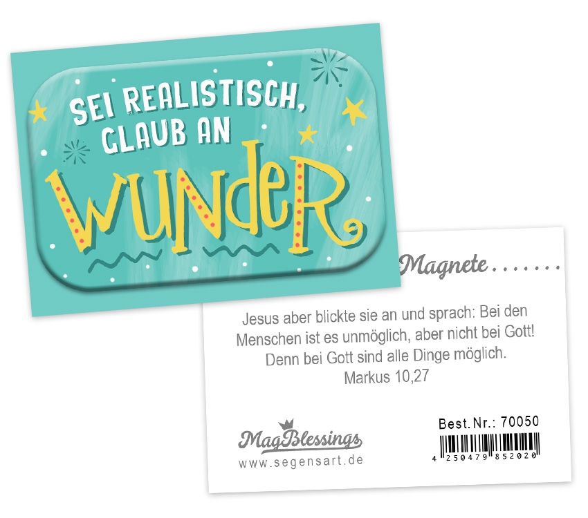 ist das Motiv des Magneten zu sehen, auf der Rückseite befindet sich ein passendes Bibelzitat.