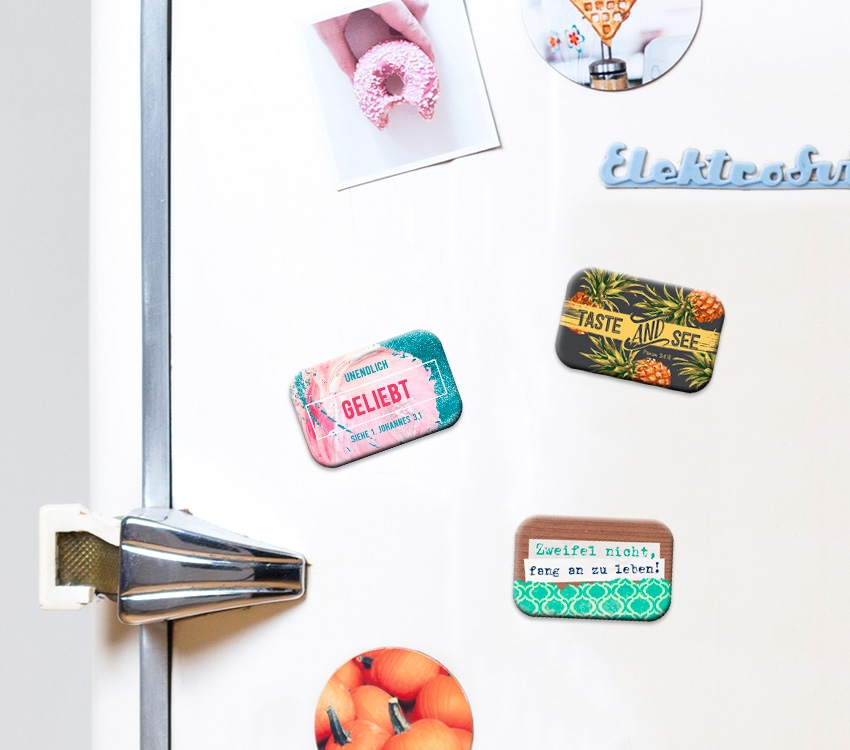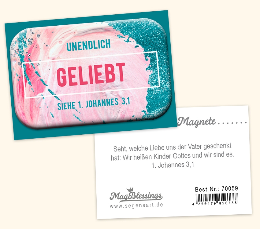ist das Motiv des Magneten zu sehen, auf der Rückseite befindet sich ein passendes Bibelzitat.