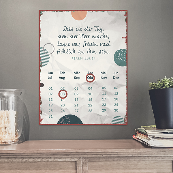 Mithilfe der zwei enthaltenen Magnetringe werden Monat und Tag markiert.