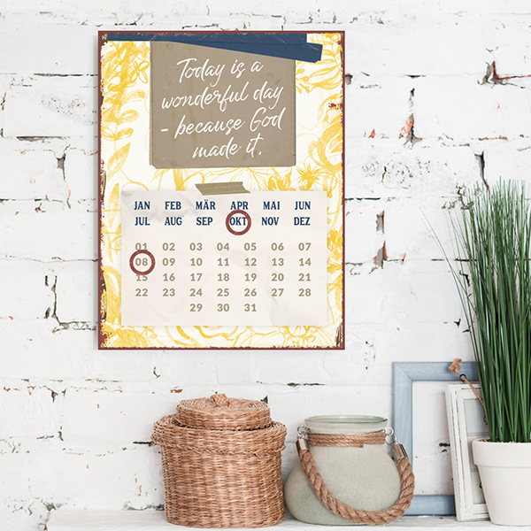 Mithilfe der zwei enthaltenen Magnetringe werden Monat und Tag markiert.