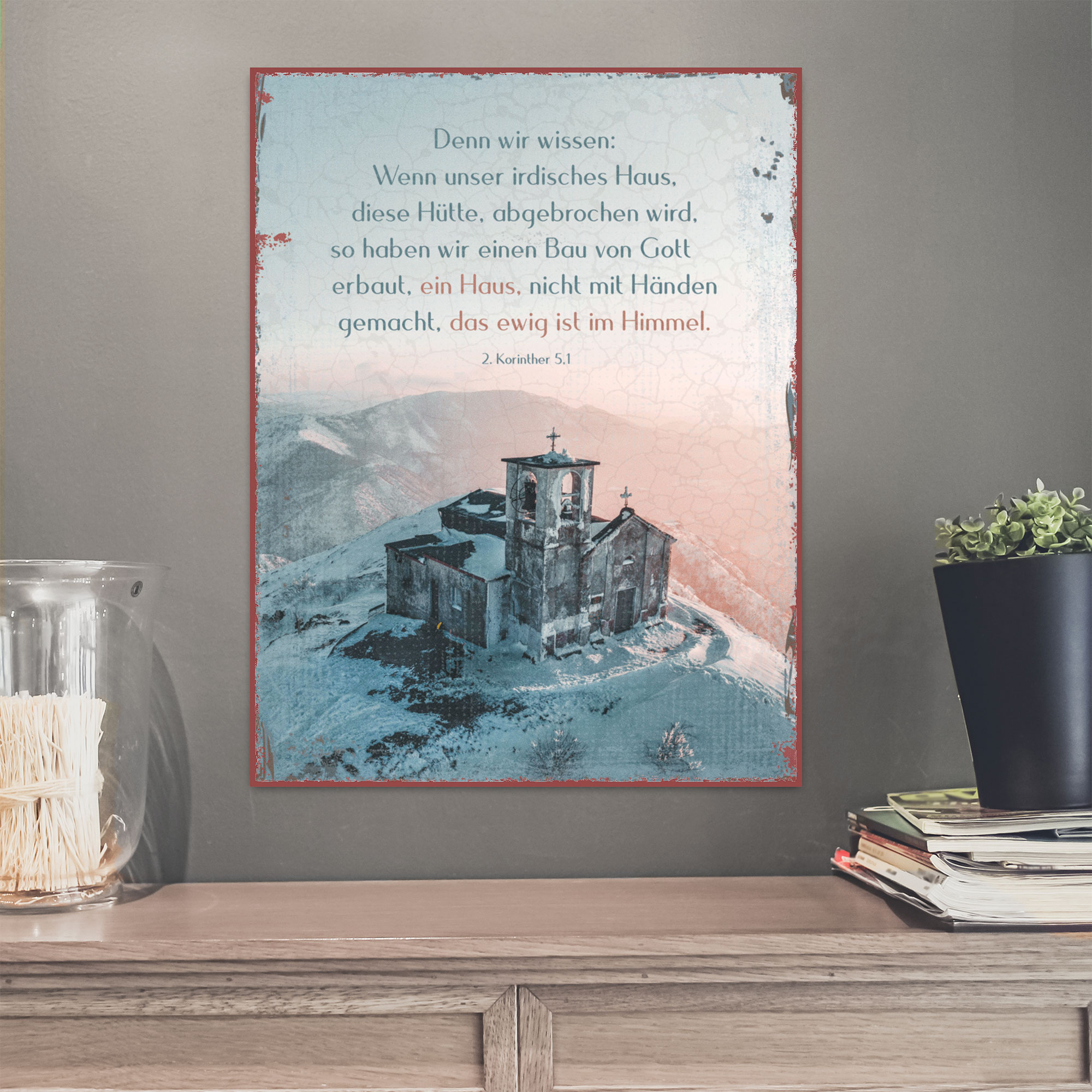 Denn wir wissen: Wenn unser irdisches Haus, diese Hütte, abgebrochen wird, so haben wir einen Bau von Gott erbaut, ein Haus, nicht mit Händen gemacht, das ewig ist im Himmel.