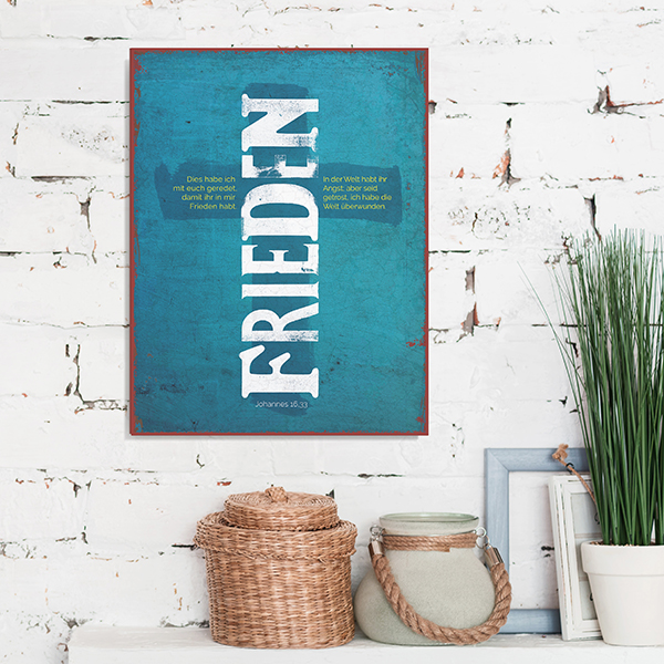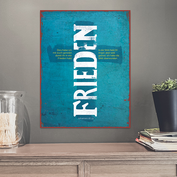 Metallschild im Vintage-Look im Format 27 x 35 cm, für trockene Innenräume geeignet, zum AufhängenHandmade - Die Metallschilder werden hier vor Ort von uns produziert.Text:Frieden