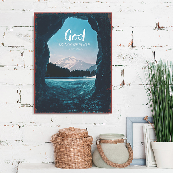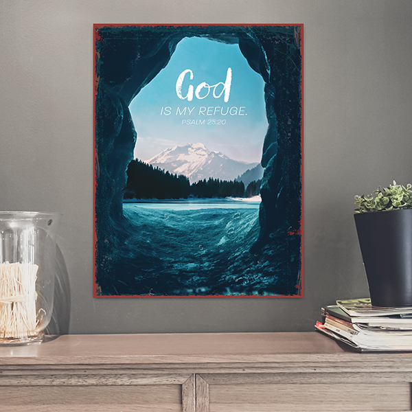 Metallschild im Vintage-Look im Format 27 x 35 cm, für trockene Innenräume geeignet, zum AufhängenHandmade - Die Metallschilder werden hier vor Ort von uns produziert.Text:God is my refuge