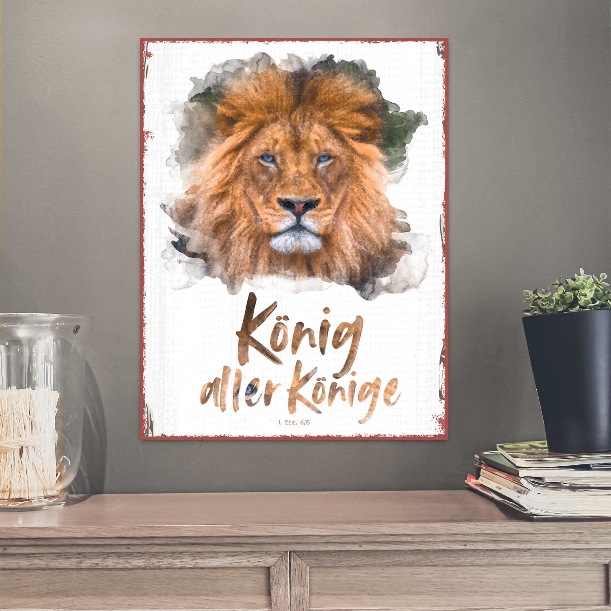 Metallschild im Vintage-Look im Format 27 x 35 cm, für trockene Innenräume geeignet, zum AufhängenHandmade - Die Metallschilder werden hier vor Ort von uns produziert.Text:König aller Könige