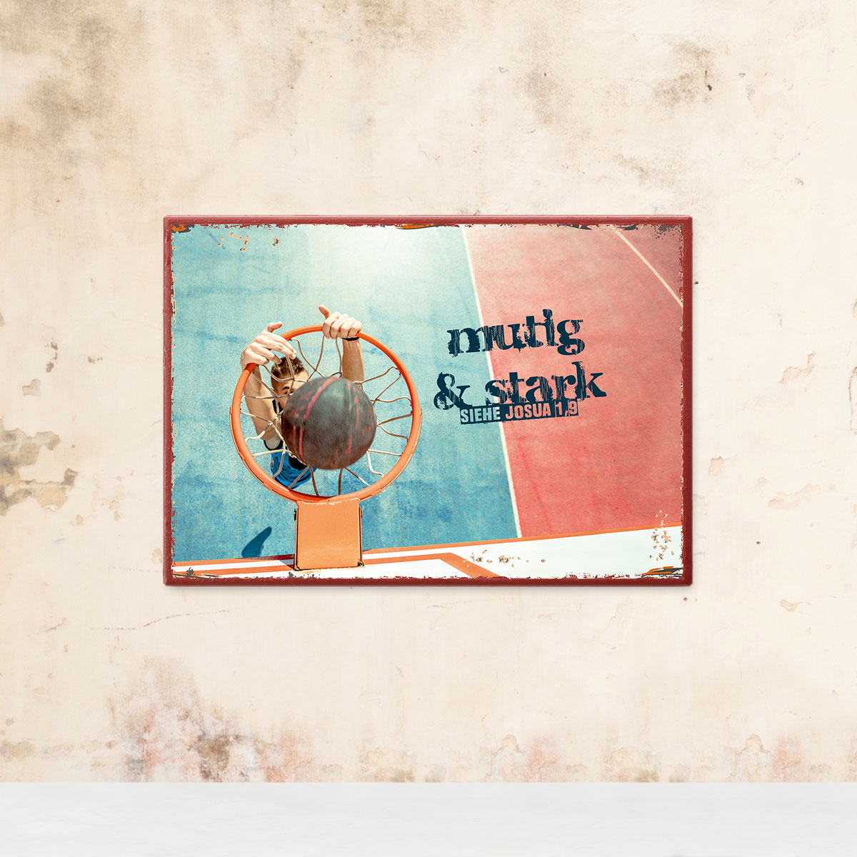 Metallschild im Vintage-Look im Format 27 x 19 cm, für trockene Innenräume geeignet, zum AufhängenHandmade - Die Metallschilder werden hier vor Ort von uns produziert.Text:mutig & stark
