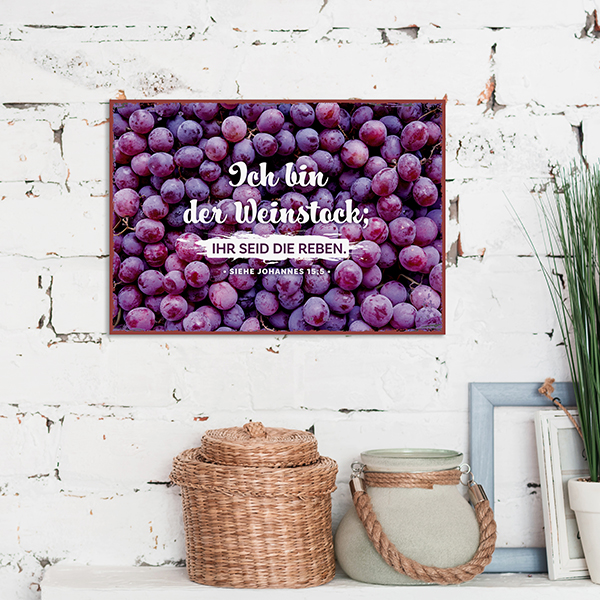 Metallschild im Format 27 x 19 cm, für trockene Innenräume geeignet, zum AufhängenHandmade - Die Metallschilder werden hier vor Ort von uns produziert.Text:Ich bin der Weinstock; ihr seid die Reben.