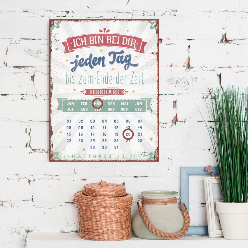 immerwährender, persönlicher Magnetkalender im Vintage-Look, 27 x 35 cm mit Aufhängung