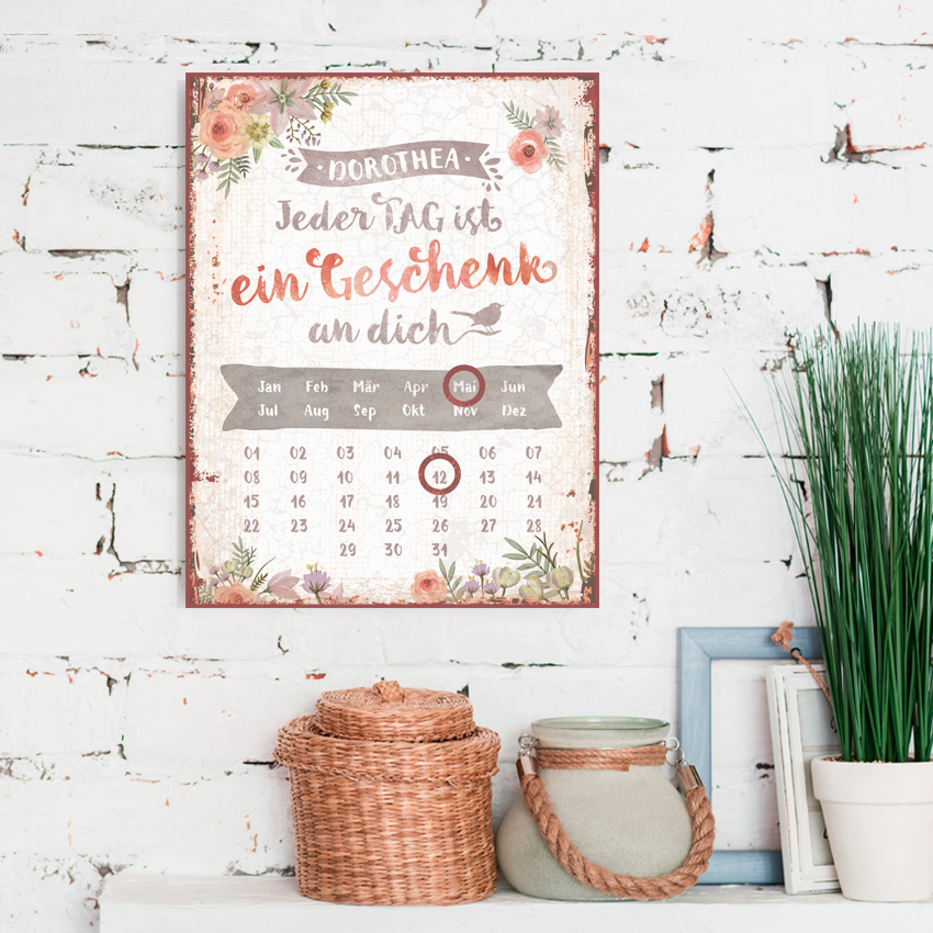 immerwährender, persönlicher Magnetkalender im Vintage-Look, 27 x 35 cm mit Aufhängung