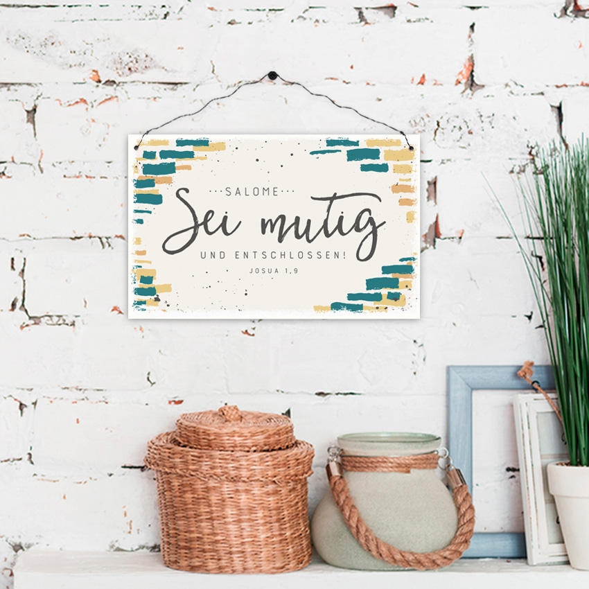 Persönliches Holzschild im Format 21 x 13 cm, für trockene Innenräume geeignet