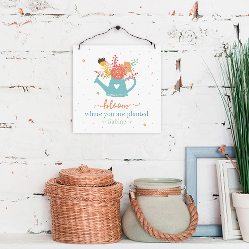 Persönliches Holzschild im Format 13 x 13 cm, für trockene Innenräume geeignet