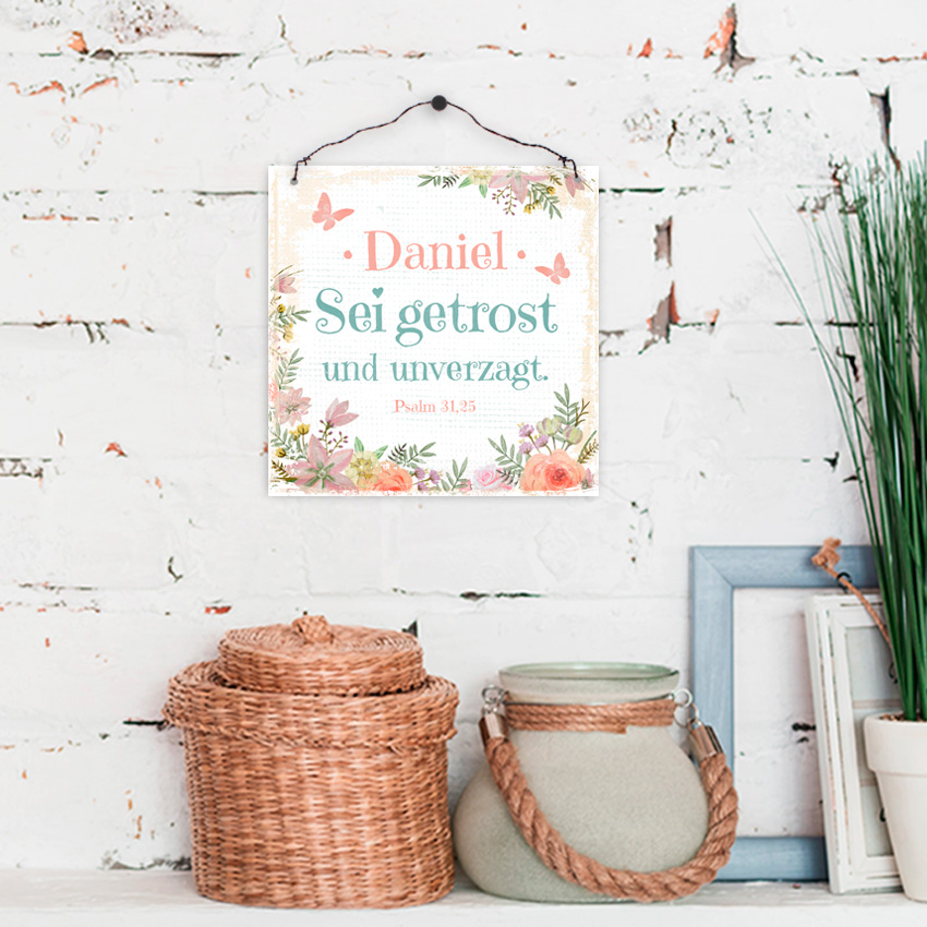 Persönliches Holzschild im Format 13 x 13 cm, für trockene Innenräume geeignet