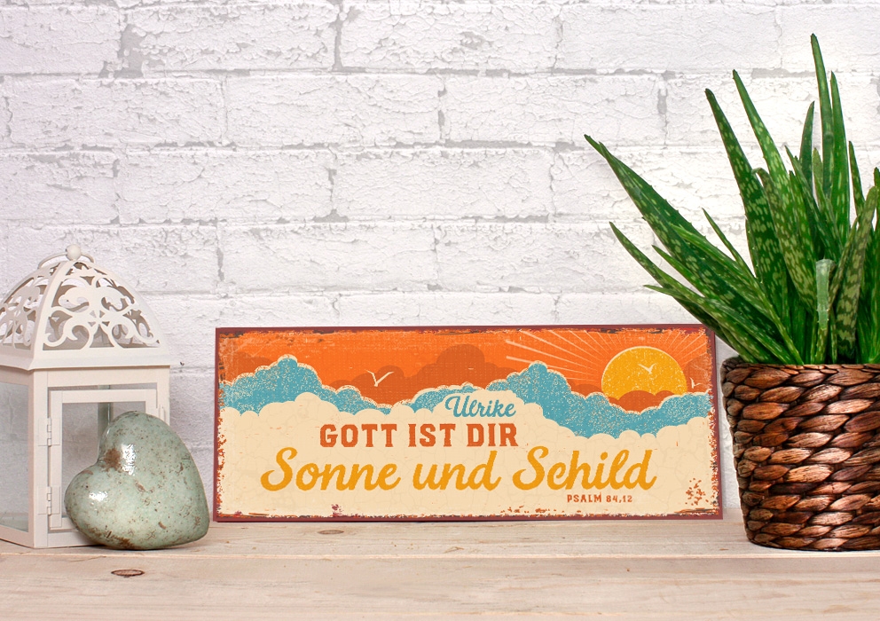 Persönliches Metallschild lang - Sonne und Schild