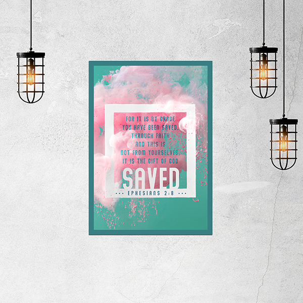 Poster, bunt, im Format DIN A3 (29,7 x 42 cm)Eine samtig matte Beschichtung sorgt für eine angenehme Haptik und schützt die Oberfläche des Posters vor Verschmutzung.Text:For it is by grace you have been saved, through faith and this is not from yourselves, it is the gift of god.