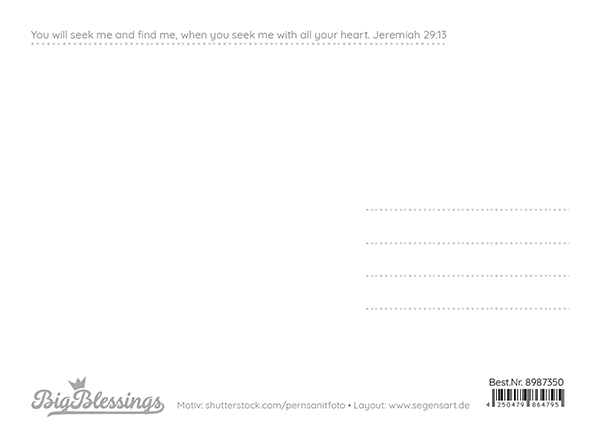 Große XL-Postkarte mit abgerundeten Ecken auf edlem Naturpapier, XL-Format 16 x 11,5 cm.Text:Seek me and find me.