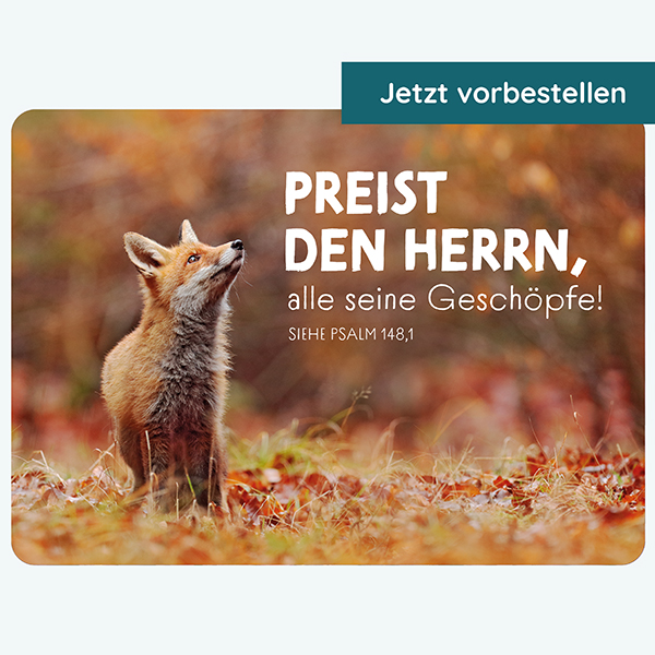 Siehe Psalm 148,1mit Text auf der Rückseite:Halleluja – Preist den HERRN! Preist den HERRN, alle seine Geschöpfe, preist ihn droben im Himmel!